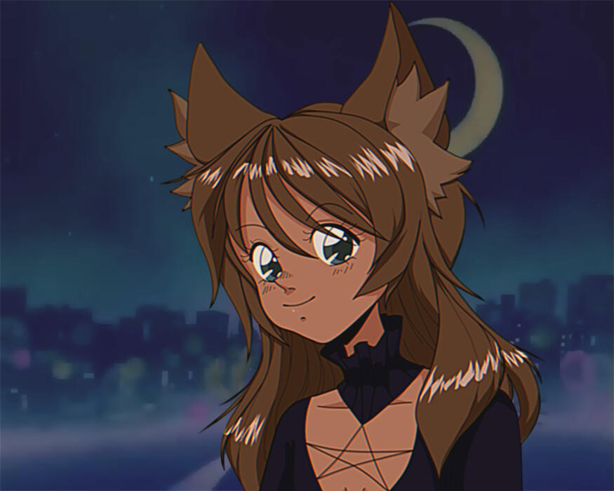 drawn in a way that is similar to 90's anime (any one of your choice with references!) with filters applied after that gives the same effect
